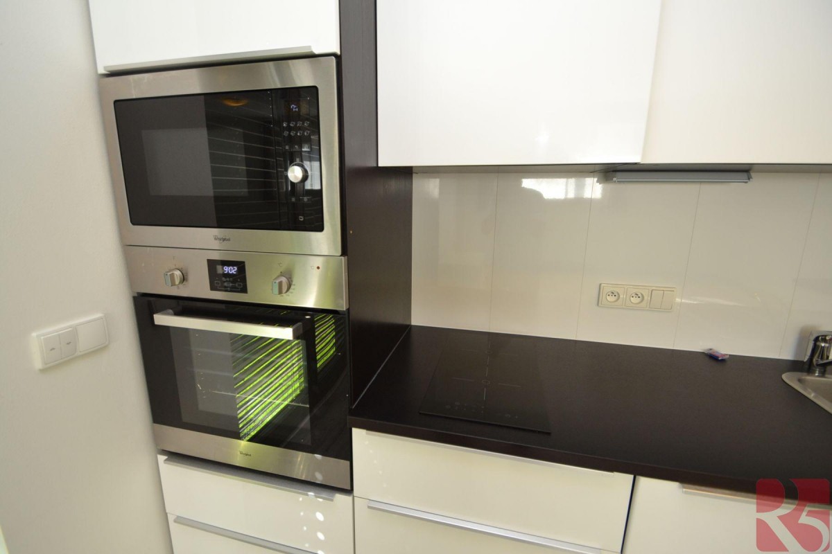 Prostorný obývací pokoj 28m2 vybaven kuchyňskou linkou s vestavěnými spotřebiči, el. trouba, indukční varná deska, lednice s mrazákem, myčka na nádobí. Na kuchyň napojený jídelní kout. Pokoj má okno na východ a velké francouzské okno se vstupem na zahradu orientovanou na jih s možností zastínění el. venkovními žaluziemi.