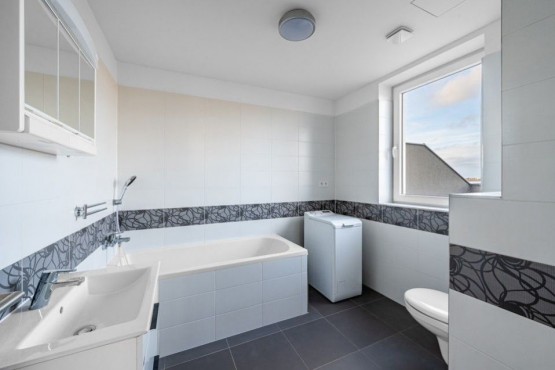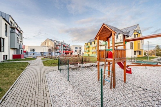 Byt se nachází v prvním patře dvoupodlažního domu bez výtahu, v nově zastavěném komplexu, v odlehlé, klidné části s dětským hřištěm ve vnitrobloku. Chůzí se dostanete za 2min. na zastávku autobusu, za 10min do centra Říčan. Ve vzdálenosti 5km je sjezd na dálnici D1, odkud jste za 20min. v centru Prahy, nebo naopak pryč od velkoměsta.
