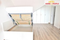 K vybavení bytu dále náleží postel s úložným prostorem, vestavěné skříně, pračka, pohovka, konferenční stolek, kuchyňský stůl a židle.