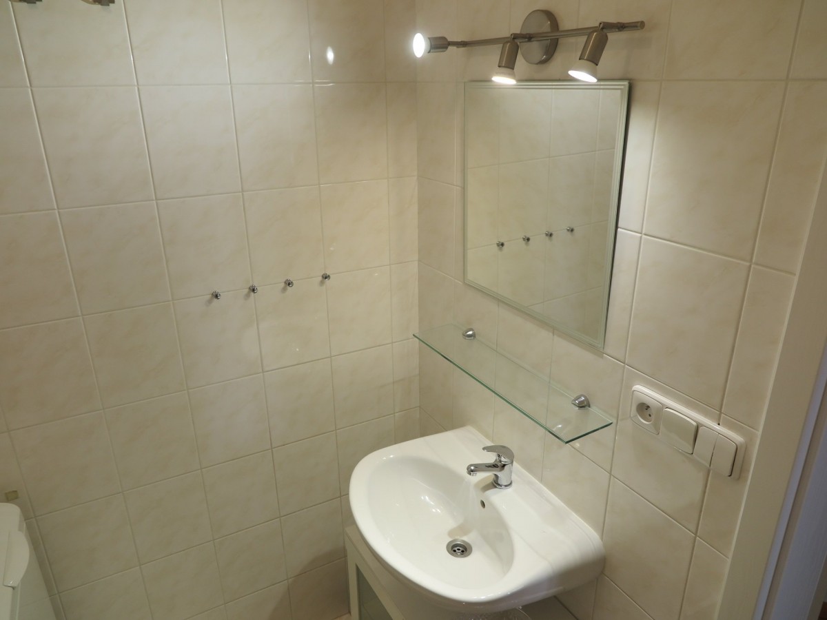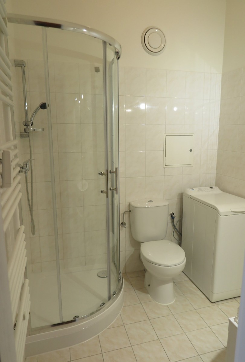 Byt sestává z předsíně (4, 60 m2), společné koupelny a sociální zařízení WC se sprchovým koutem (3, 70 m2), prostorného a slunného pokoje s kuchyňskou linkou (37, 00 m2), ze kterého se vchází na velkou terasu (13, 70 m2). K bytu nenáleží sklep.
