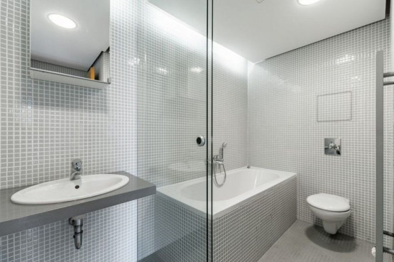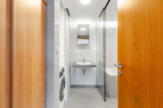 Dispozice prostorného bytu 1+kk zahrnuje vstupní chodbu, otevřený prostor obývací části s kompletně vybavenou kuchyní a jídelním prostorem a spací částí a přímým vstupem na prostorný balkon koupelna s vanou, toaleta, sklep a parkovací místo.