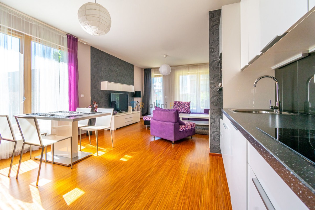 Ve výhradním zastoupení nabízíme k pronájmu luxusní byt 1+kk o výměře 45 m², který disponuje velkou předzahrádkou o velikosti 156 m². K bytu náleží garážové stání a prostorný sk...lep. Bytový dům se nachází v klidné rezidenční čtvrti Botanica v Praze 5 Jinonicích. Byt nabízí otevřený koncept obývacího pokoje s plně vybavenou kuchyní, s ložnicí oddělenou závěsy a koupelnou se sprchovým koutem. V bytě jsou dřevěné plovoucí podlahy a je kompletně zařízen - nábytek, TV, kuchyňské el. spotřebiče a pračka. O bezpečí se starají bezpečnostní dveře a venkovní hliníkové elektrické žaluzie, které jsou osazené na všech oknech. Předzahrádka skýtá téměř neomezené možnosti vyžití - lze umístit posezení, grill, bazén atd. Vratná kauce ve výši jednoho nájmu, záloha za energie a služby ve výši 3. 000, - Kč/měs. Bytový dům se nachází v bezprostřední blízkosti rozlehlého přírodního a rekreačního parku Vidoule. Příjemné bydlení, kousek od Německé školy, 7 minut k nejbližšímu metru, 15 minut chůze k nákupnímu centru Butovice. Pro bližší info mne neváhejte kontaktovat.