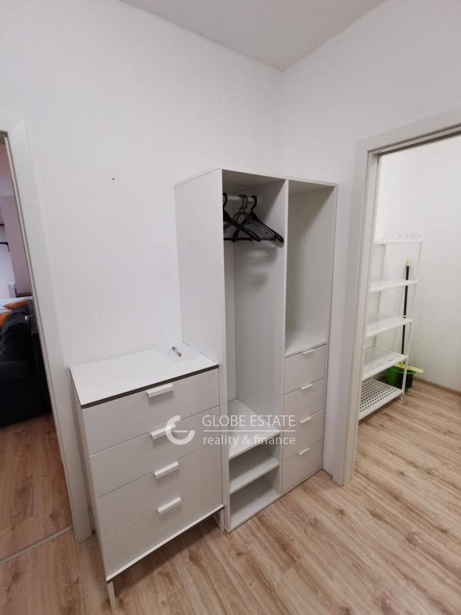 Byt je kompletně vybaven. Ve vstupní chodbě se nachází šatní skříň s botníkem. Koupelna je vybavena vanou, závěsnou toaletou, pračkou, a skříňkami. Z chodby se také vstupuje do šatny s regálem. V obývacím pokoji je pohodlná sedačka, manželská postel, obývací nábytek a jídelní stůl se židlemi. Kuchyňský kout je vybaven indukčním dvouplotýnkovým vařičem, lednicí s mrazákem, troubou a digestoří.