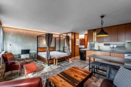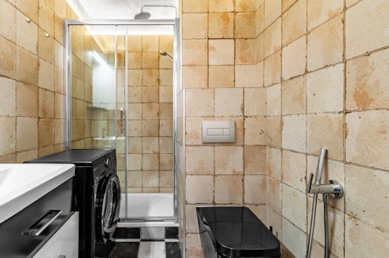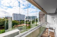 Zdařilá kompletní rekonstrukce z roku 2017 je moderního, designového vzhledu a její dispozice nabízí velkorysý otevřený prostor obývacího pokoje s kuchyní a jídelnou a oddělenou spací a pracovní částí. Dále předsíň se vstupem do koupelny s rohovým sprchovým koutem. Obvod celého bytu lemuje prostorná zasklená lodžie.