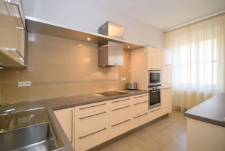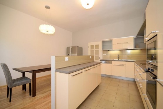 Krásný, částečně za...řízený byt má celkovou výměru 121 m2. Kompletně vybavená kuchyně s vestavěnými spotřebiči. Dále je byt vybaven TV stolkem, televizí, pračkou, sušičkou a jídelním stolem se židlemi. Koupelna s vanou, toaleta zvlášť. K dispozici pračka, sušička. Velkou výhodou jsou samostatné pokoje.