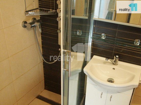 Koupelna je propojena s toaletou, v chodbě je šatní skříň a pračka, která je též součástí vybavení.
