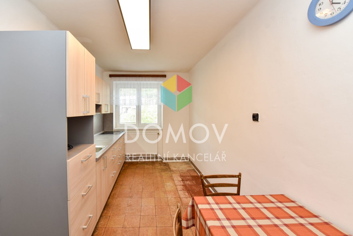 Byt se nachází v 1 patře a je zařízen kuchyňskou linkou. Dále je zde prostor...ný obývací pokoj a ložnice. V koupelně umyvadlo, vana, sociální zařízení WC samostatně.