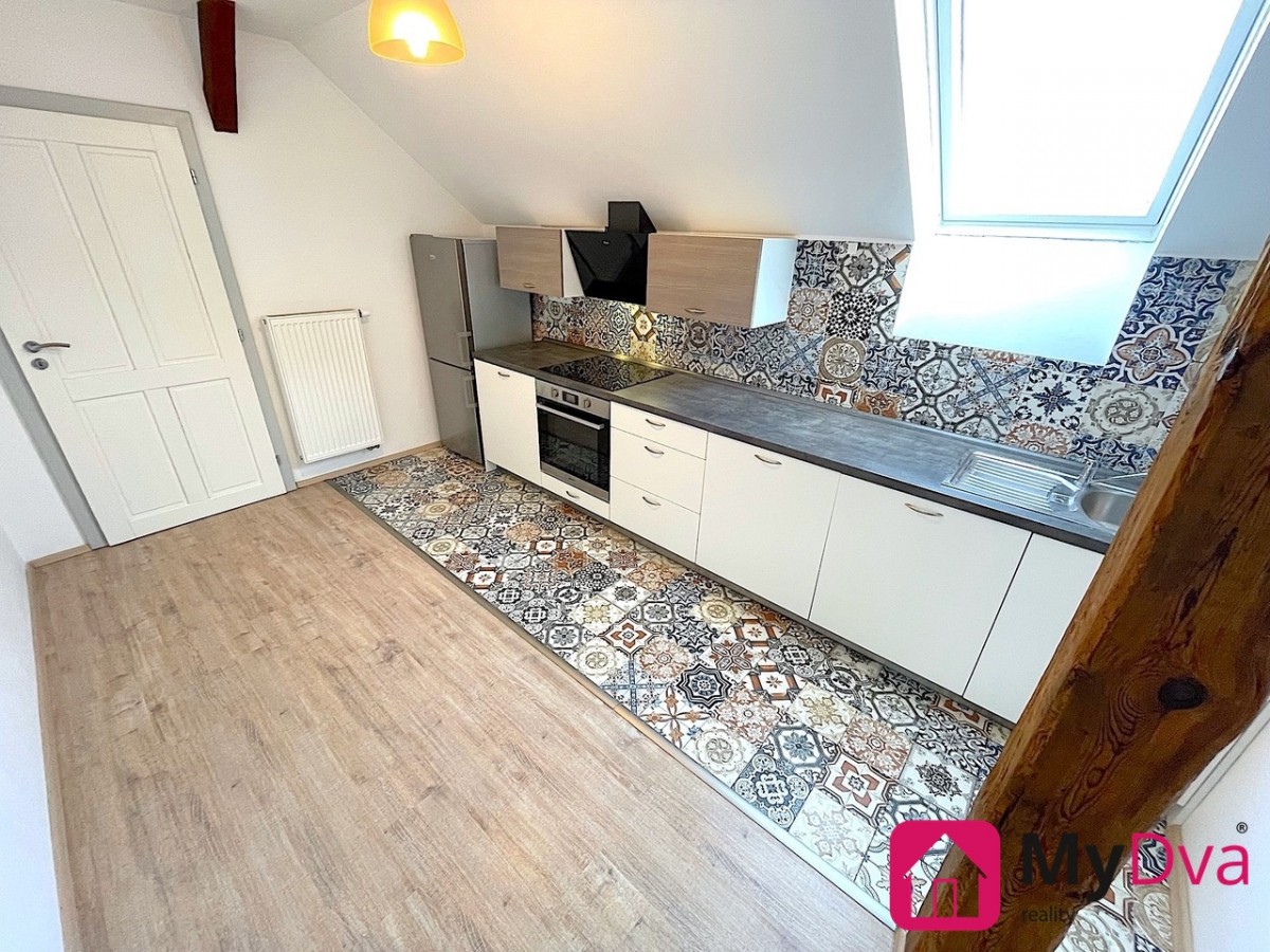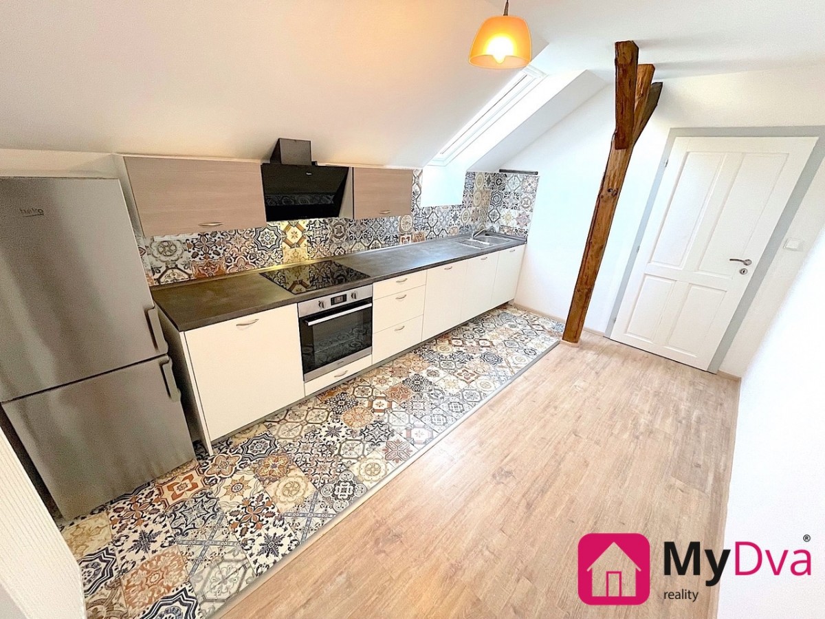 Nabízíme k pronájmu stylový mezonetový byt o velikosti 50 m2 a o dispozici 2+1. Byt se nachází v cihlovém domě ve 3. nadzemním podlaží. Pronajímá se nevybavený a je volný... od 1. 10 . Byt se skládá z prostorné předsíně, kuchyně s jídelnou a kuchyňskou linkou se spotřebiči, dále z obývacího pokoje, ložnice v galerii s postelí, která je součástí vybavení, dále koupelny se sprchovým koutem a toalety. K bytu náleží sklepní koje. Parkovat lze před domem.