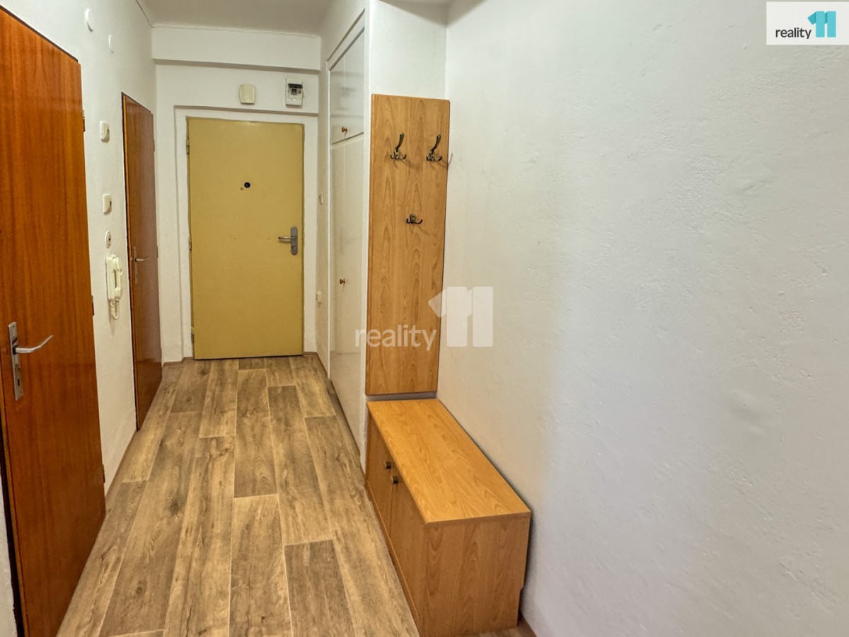 V chodbě je praktická vestavěná skříň, botník a věšák.