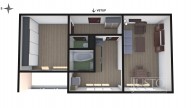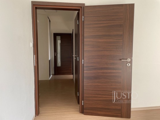 Po vstupu do bytu se z předsíně (v předsíni je skříň a stojan na boty) dostanete na samostatnou toaletu s umyvadlem. Dále pak do velkého neprůchozího pokoje s velkou vestavěnou šatní skříní a se vstupem na lodžii. Ta je situována na západ, do klidného vnitrobloku okolních domů.