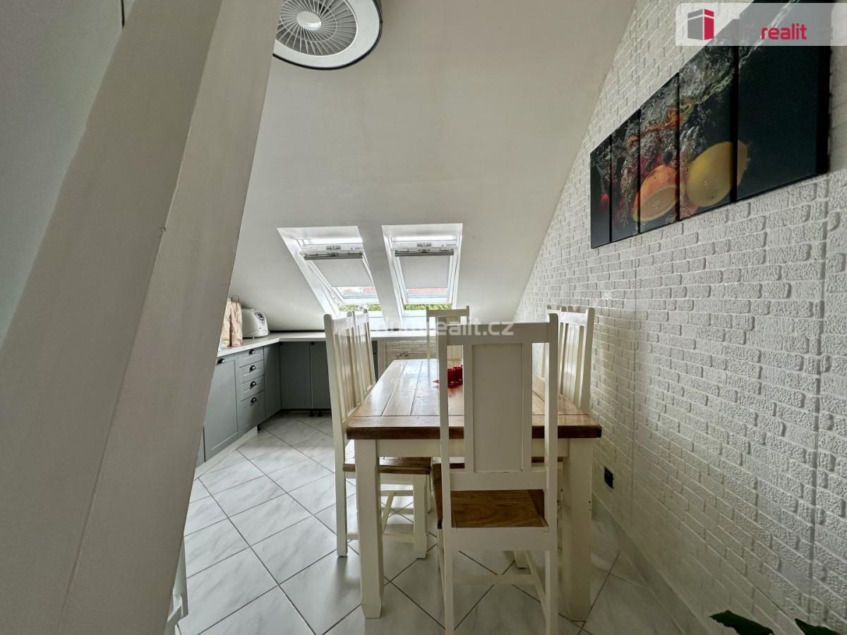 dlouhodobý pronájem podkrovního bytu 2+1 v ul. Kollárova v Ostrově. Byt. jednotka o velikosti 55 m² se nachází v 4. NP (čtvrté nadzemní patro) bez výtahu a je po částečné rekonstrukc...i s možností okamžitého nastěhování. Byt je vyjma televizorů vybaven tak, jak je na přiložené fotodokumentaci a to včetně lednice, veškerých úložných prostor, kuchyňského stolu atd. Kuchyň je osazena vestavnou elektrickou deskou s troubou a myčkou. Pokojíky jsou menší velikosti a bytová jednotka je tak vhodná pro jednu až dvě osoby. Nájem je splatný vždy do 5. tého dne daného měsíce a jeho výše činí 11. 900 . - Kč + 2. 812 zálohy pro jednu osobu. Každá další osoba o 800. - Kč více. V zálohách je zahrnuto teplo, teplá a studená voda, odvoz odpadu. Elektřinu si pronajímatel nechává napsanou na sebe a je ve výši 1. 200. - Kč měsíčně. Vyúčtování se provádí jedenkrát ročně dle skutečné spotřeby. Vratná kauce (jistota) jednoho nájmu je požadována ve výši 11. 900 Kč, přičemž při podpisu nájemní smlouvy je nájemce povinen uhradit v hotovosti celou kauci ve výši 11. 900 Kč + provizi RK ve výši 11. 900 Kč. Nájemné a zálohy se hradí na účet pronajímatele. K bytu náleží velká sklepní kóje. Ev. číslo: 655262. Energetický štítek: C