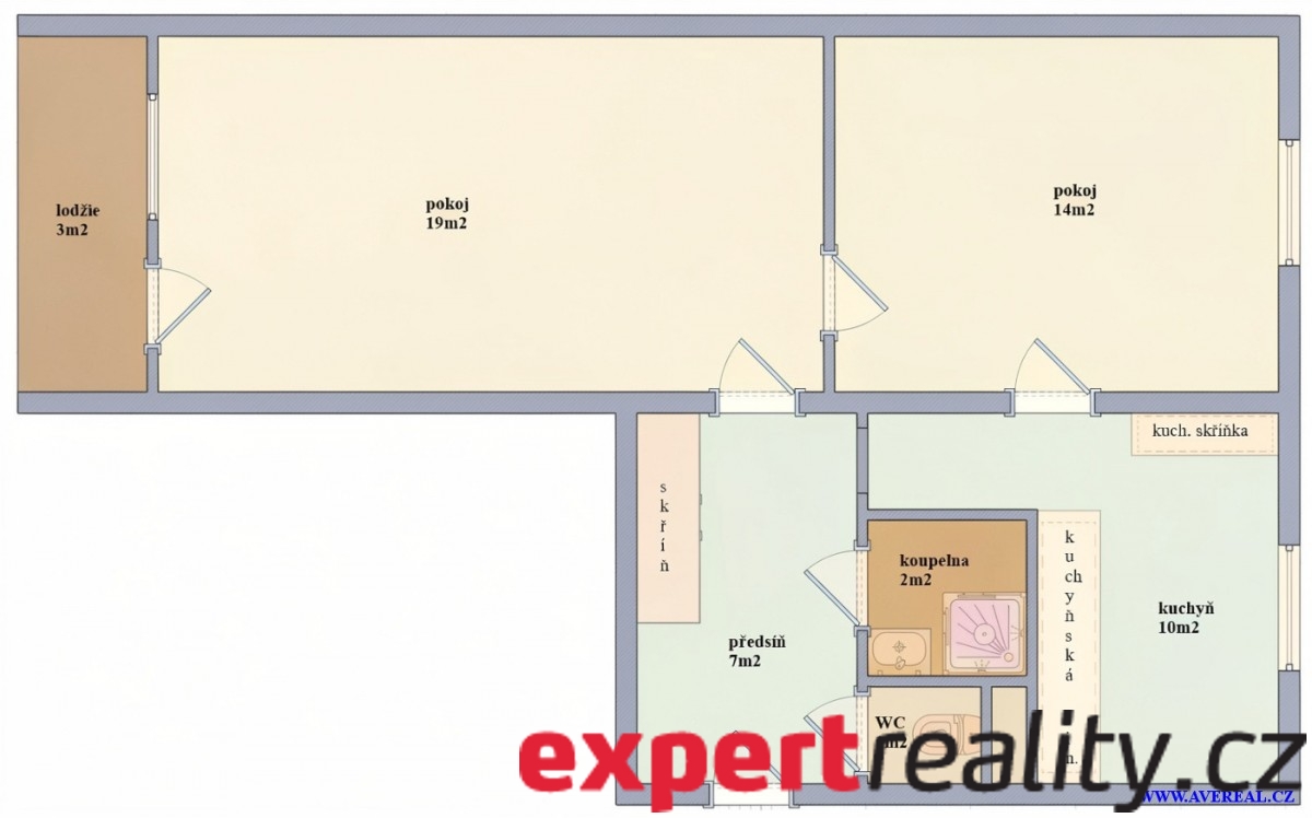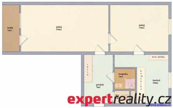 2+1, 56 m2, cihlová, OV, 7. podlaží