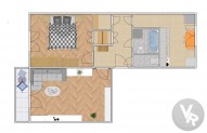 Vybavení: V bytě je kuchyňská linka včetně elektrospotřebičů: Plynový sporák, rychlovarná konvice, stůl, židle, mikrovlnná trouba a lednice. V koupelně je k dispozici pračka a jinak je byt nezařízený.