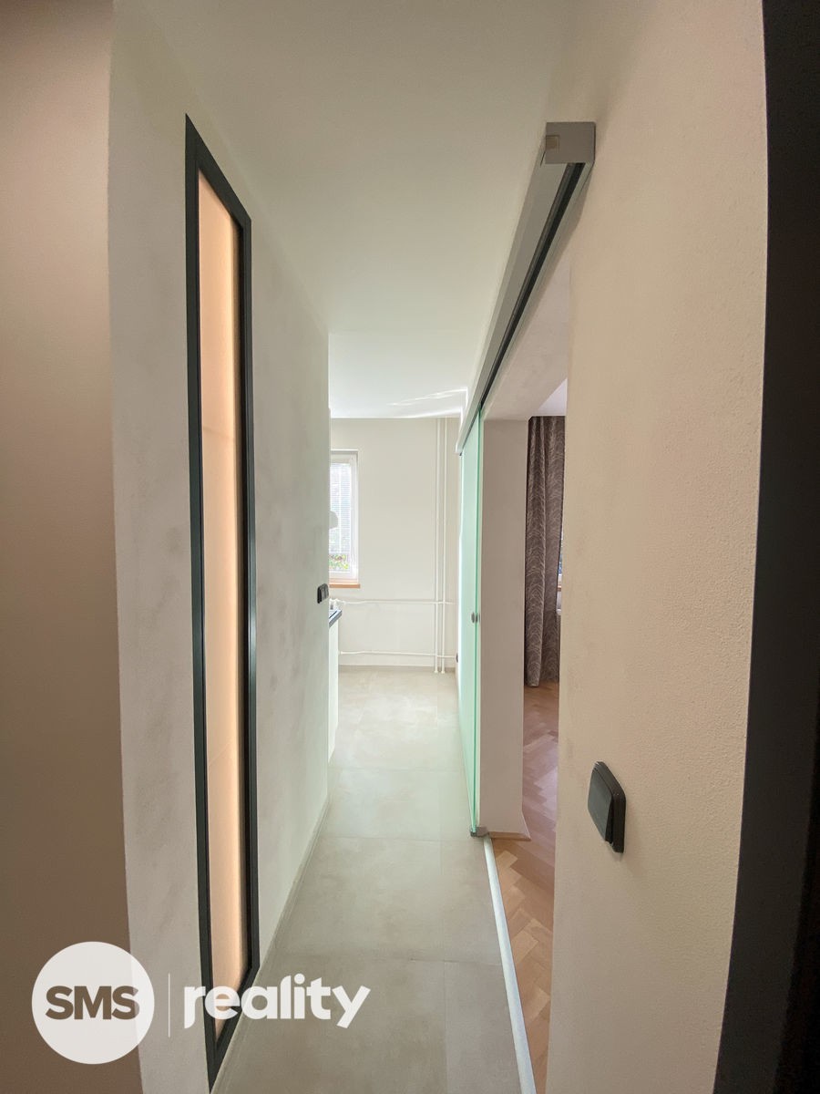Podlahy v obou pokojích pokrývají zrenovované dřevěné parketová podlaha, které napomáhají k celkové útulnosti. Výhodou je prostorný balkón směřující do klidné oblasti se spoustou zeleně.