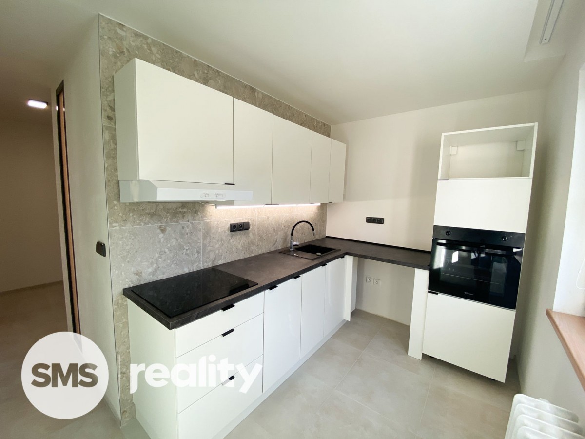 V kuchyni najdeme novou kuchyňskou linku s indukční deskou, troubou, myčkou a přípravou na pračku.