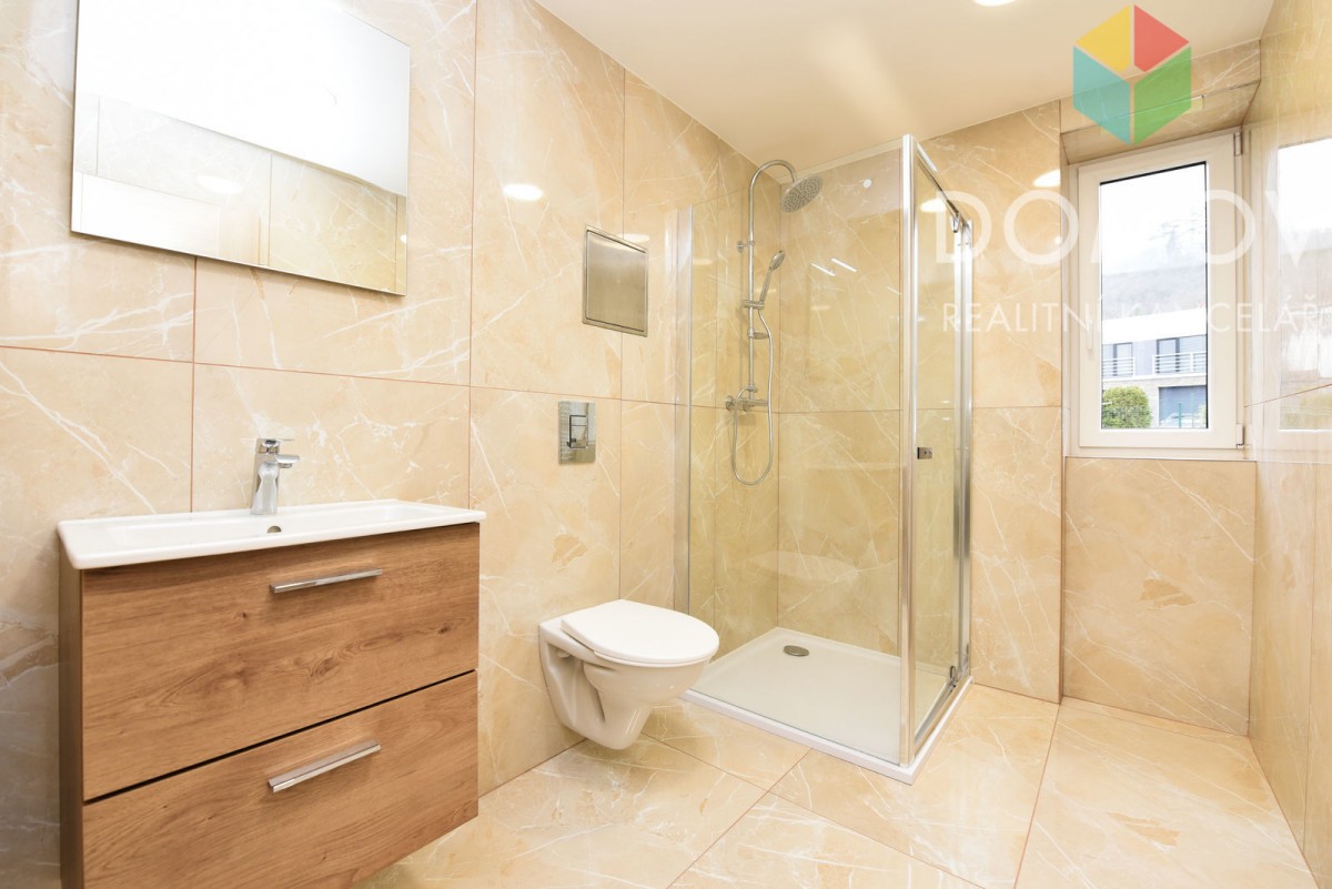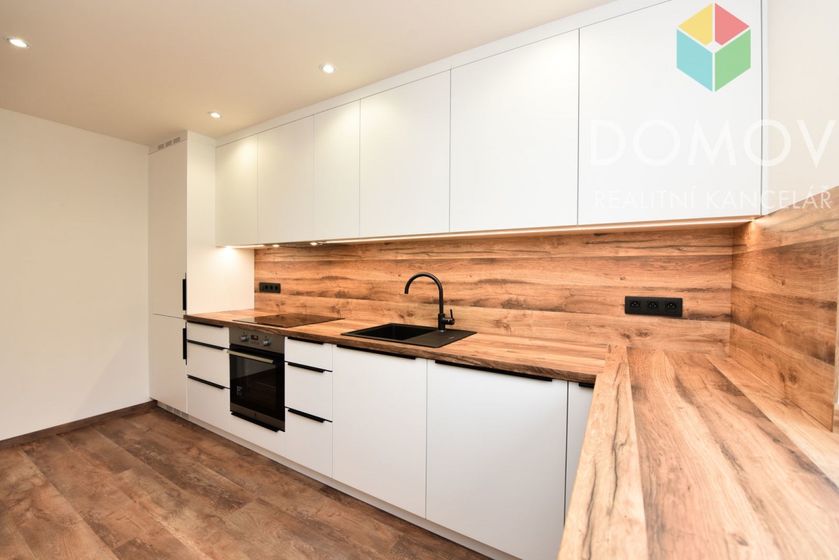 Byt je po úplné rekonstrukci, pyšní se velice pěknou kuchyní vybavenou myčkou, el. troubou, indukční deskou a lednicí s mrazákem. Také koupelna prošla rekonstrukcí podle nejnovějších trendů, obsahuje sprchový kout, závěsné sociální zařízení WC, velkoformátové obklady až do stropu. Stejně tak podlahy, dveře, svítidla, vše je úplně nové, barevně příjemně sladěné.