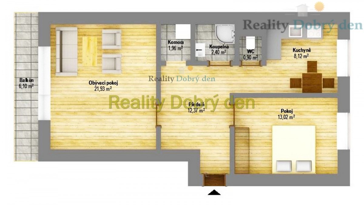 Celková podlahová plocha bytu činí 58. 72m² a byt je bez vybavení, což vám umožní přizpůsobit si interiér dle vašich individuálních představ. Vstupem do bytu vás přivítá prostorná chodba, která dává přístup do všech místností.