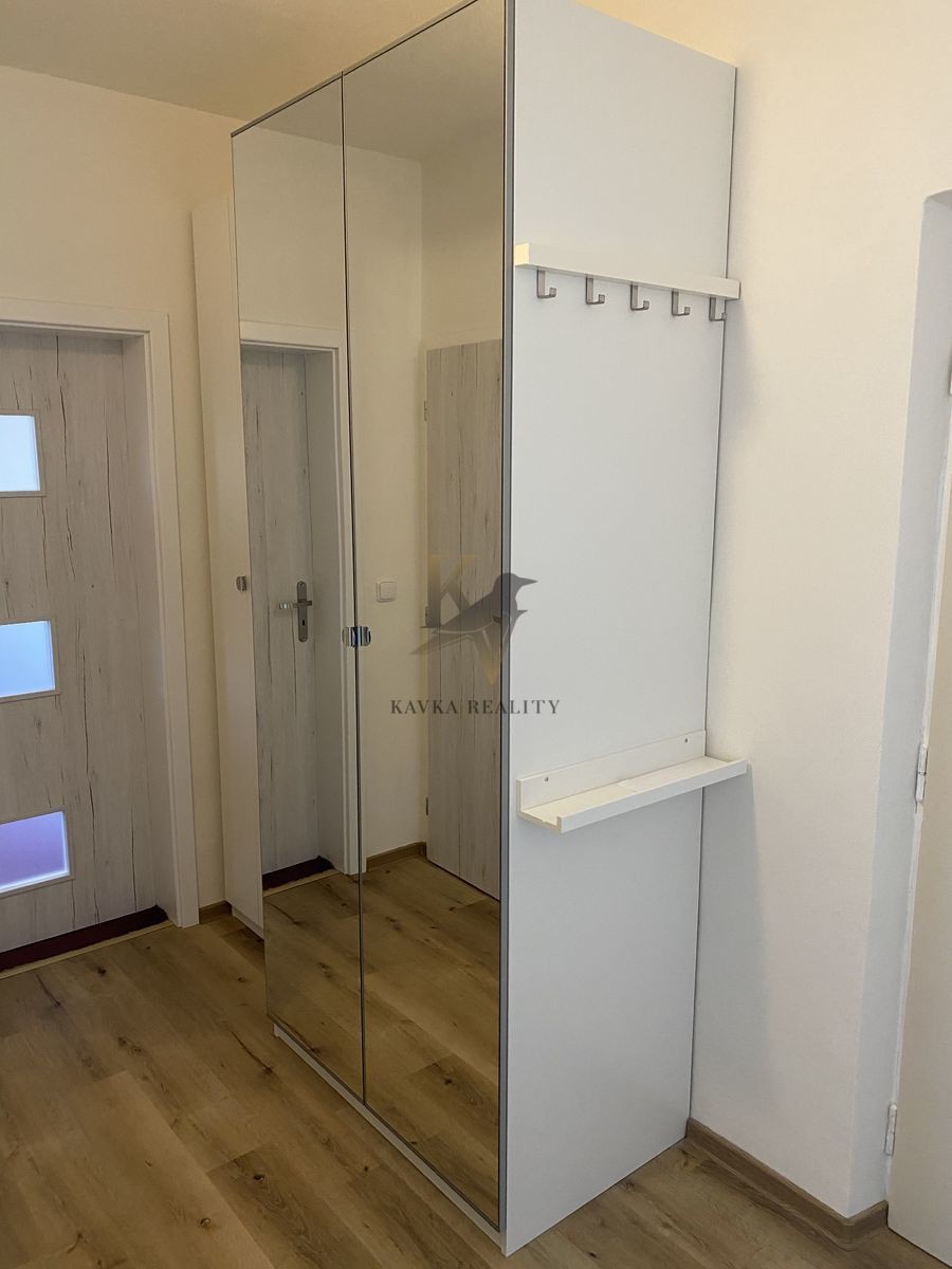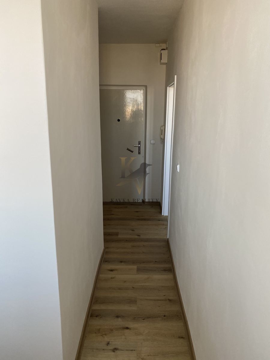 V celém bytě je nová elektroinstalace, nové omítky, nové interiérové dveře se zárubněm ve stejné barvě a v hezkém provedení. Součástí vybavení je také vestavěná skříň v chodbě .