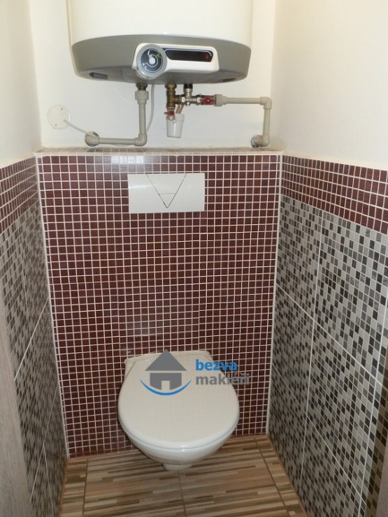 Koupelna je zařízena rohovou vanou, umyvadlem se skříňkou a je zde i prostor pro pračku. sociální zařízení WC je oddělené. Ohřev teplé vody zajišťuje bojler.