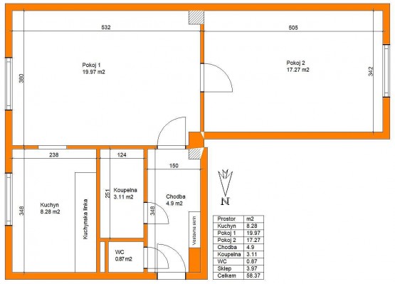 2+1, 58 m2, cihlová, OV, 1. podlaží