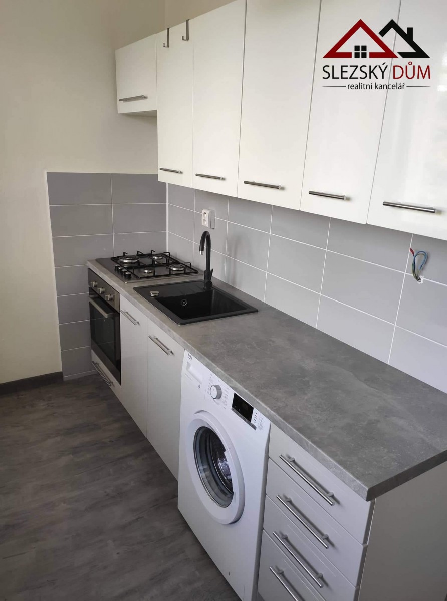 Byt se skládá ze 2 pokojů a kuchyně vybavené kuchyňskou linkou se spotřebiči - myčk...a, sporák, pračka.