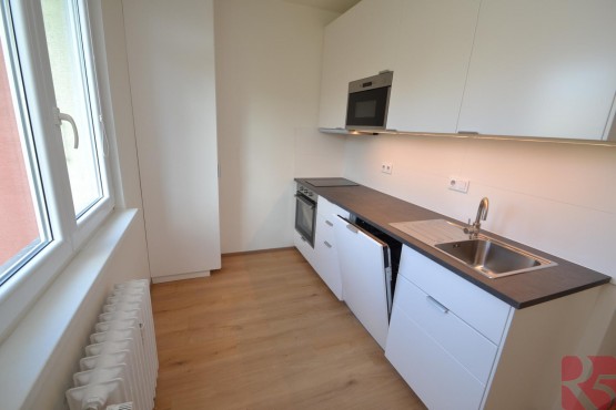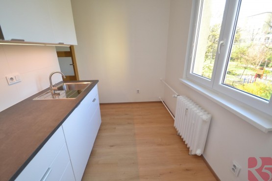 Byt po právě dokončené rekonstrukci si za...choval praktickou dispozici neprůchozího obývacího pokoje a ložnice. Kuchyň samostatná s velkým oknem, vybavena kuchyňskou linkou IKEA s vestavenou myčkou, el. troubou, indukční varnou deskou, odsavačem par.