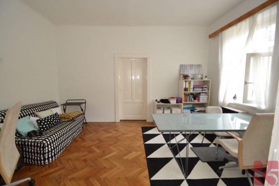 Pronájem bytu 2+1 60m2 v Praze 8 - Karlín, ul. Pobřežní. Byt ve 3. patře cihlového domu bez výtahu s okny na jihozápad do vnitrobloku.