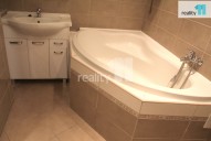 Zděné koupelnové jádro s rohovou vanou a sociální zařízení WC.