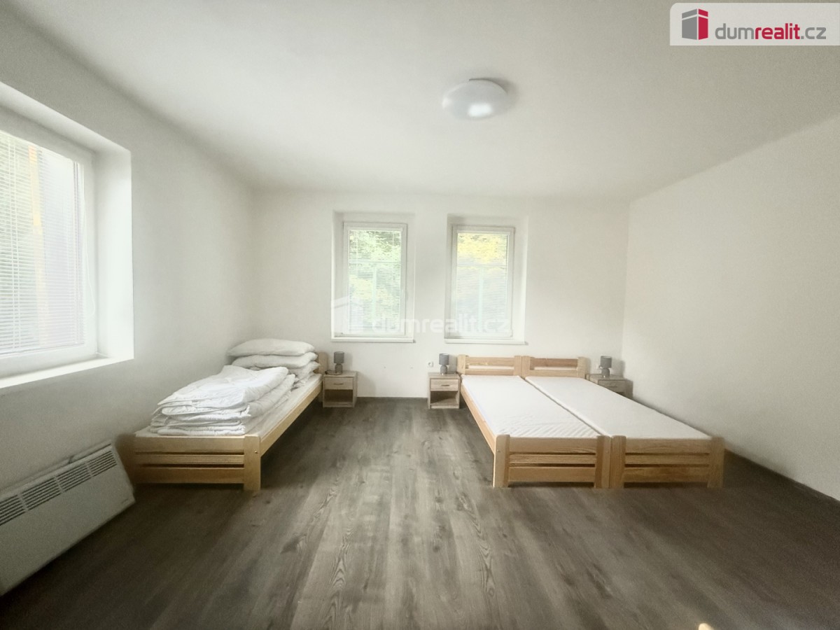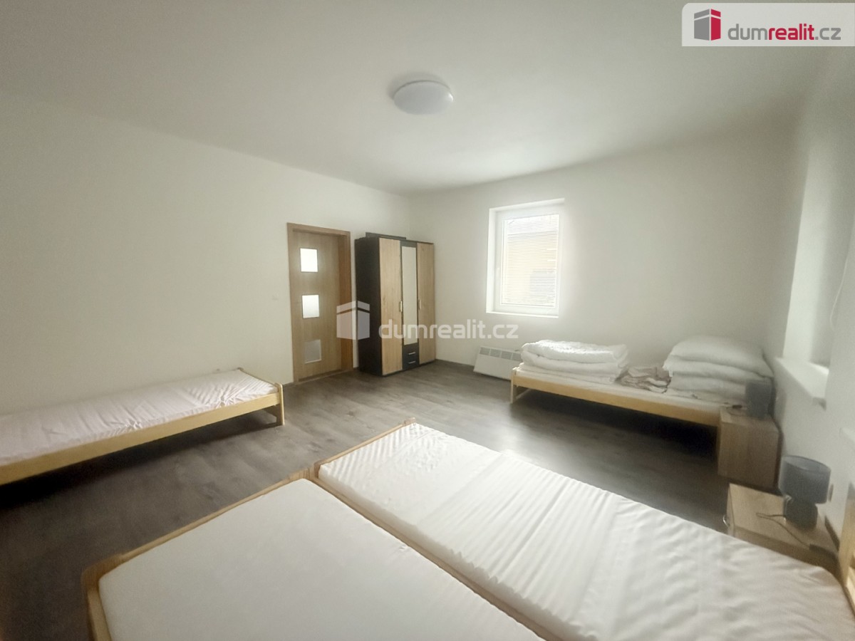 Voda 550 Kč/osoba, chodbová elektřina 50 Kč. Elektřina se přepisuje na nájemníka. K pronájmu nabízíme nově zrekonstruovaný byt o dispozici 2+1 a velikosti 65 m², který se nachází v... 1. patře zrekonstruovaného bytového domu se zahradou a vyhrazeným parkovacím stáním. Byt je plně vybaven – k dispozici jsou skříně, televize, jídelní stůl se židlemi, lednice, nádobí, postele i sedací souprava. Kuchyňská linka je velice prostorná a součástí je sporák.