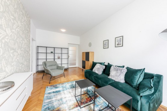Pronájem nově zařízeného bytu 2+1 65 m2 na velice praktickém místě ve Vršovicích, v klidné části ulice Moskevská, hned u zastávky tramvaje, kde nejezdí žádná auta. Vše ...potřebné k životu pár kroků chůze.