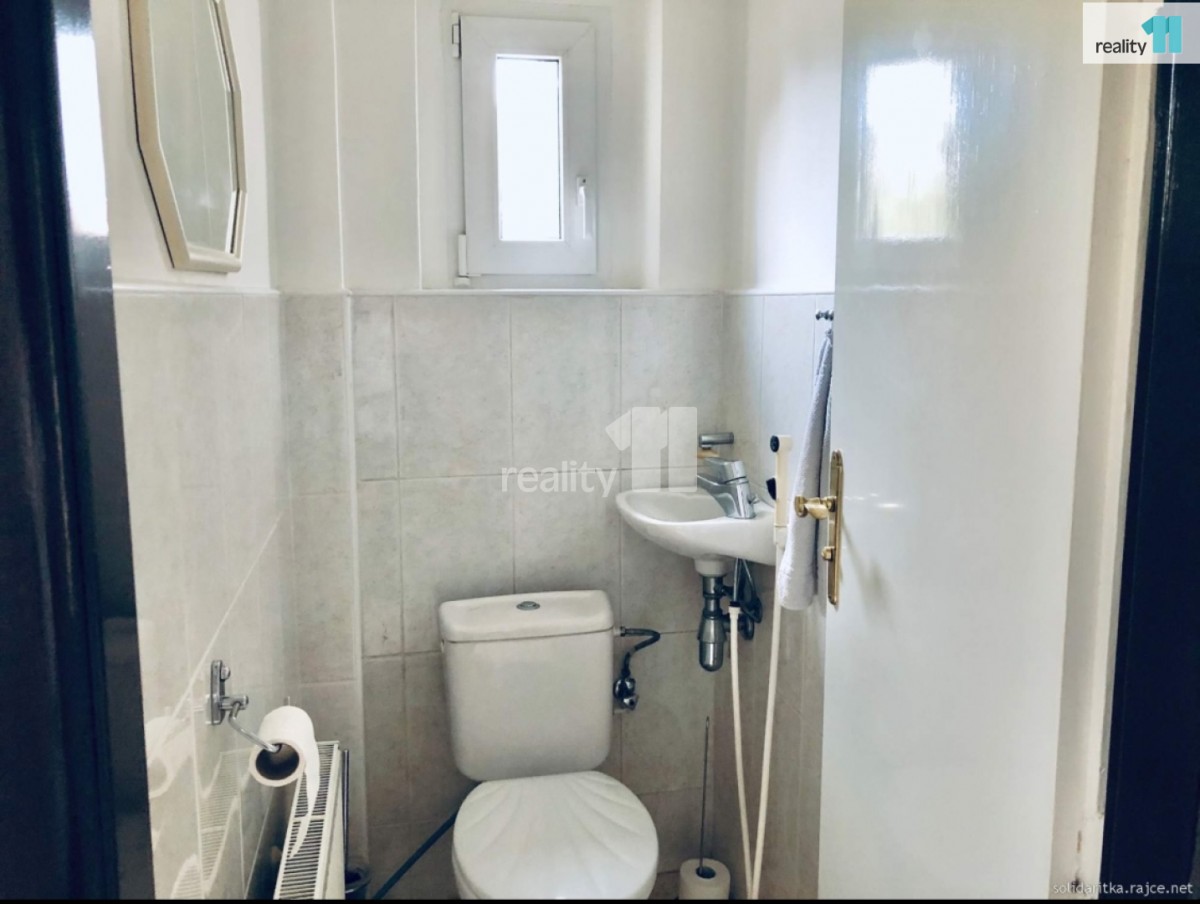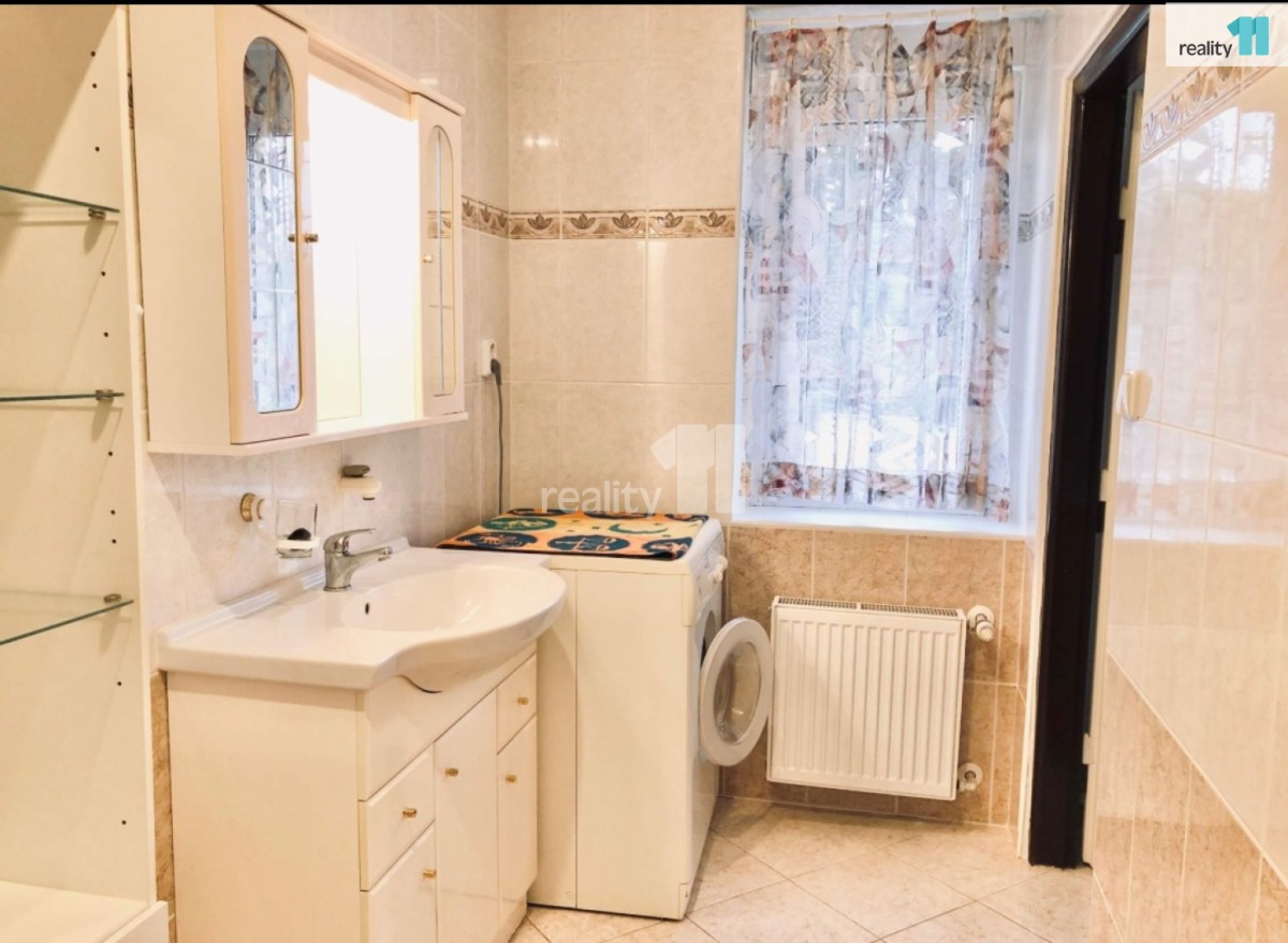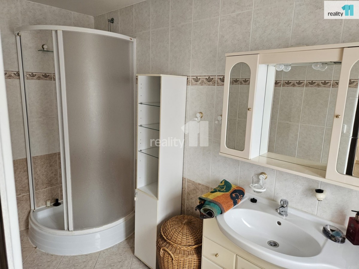 Koupelna se sprchovým koutem, pračka včetně sušičky, špajz včetně lednice/mrazáku. sociální zařízení WC samostatné.