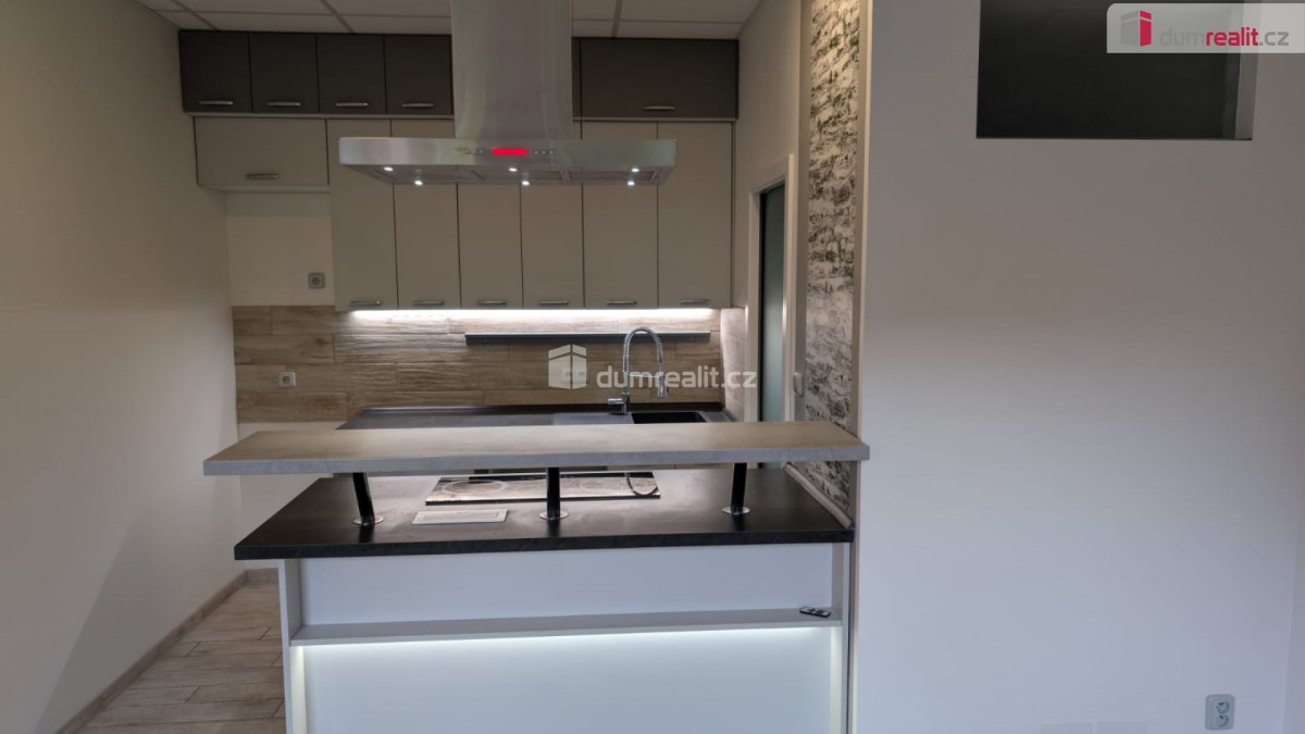 Dispozice bytu: předsíň, obývací pokoj spojený s kuchyní (je zde moderní kuchyňská linka s mnoha úložnými prostory + odkládací pult se sklokeramickou deskou, místem na lednici, troubu a myčku), dále prostorný obývací pokoj, ložnice, malá technická místnost s plynovým kotlem, místem na pračku a sušičku, sociální zařízení WC a koupelna se sprchovým koutem.