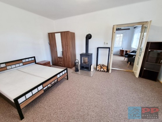 Byt je zařízený nábytkem a spotřebiči (lednice s mrazákem, mikrovlnná trouba, myčka nádobí, kombinovaný sporák a pračka) a disponuje prostornou předsíní, kuchyní, obývacím pokojem ze kterého se dostanete do prostorné ložnice. V koupelně je vana, umyvadlo, pračka, el. bojler, kombinovaný sporák a část kuchyňské linky. Po dohodě lze něco z vybavení vyklidit. Topení - v kuchyni jsou akumulační kamna, v obývacím pokoji WAW a v ložnici krbová kamna na dřevo. Na podlaze jsou koberce, PVC a dlažba. K dispozici je komora a sklep. Na zahradě je kůlna a dřevník.
