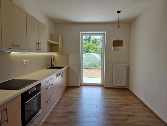 Po vstupu do bytu Vás příjemně překvapí moderní a svěží design bytu. V kuchyni je nová kuchyňská linka, která je vybavena vestavěnými spotřebiči jako je elektrická varná deska, elektrická trouba, myčka na nádobí a digestoř. Předností této kuchyně je dostatek prostoru i pro jídelní kout. Obývací pokoj navazuje na kuchyň a tím nabízí praktické využití obytných prostor.