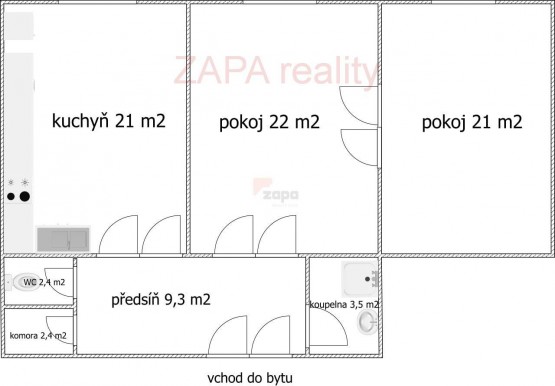 2+1, 82 m2, cihlová, OV, 4. podlaží