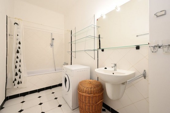 Byt o rozloze 86 m ...sestává ze vstupní haly, obývacího pokoje s kuchyňským koutem (vybaven lednicí s mrazákem, elektrickým sporákem, elektrickou troubou), ložnice s okny do vnitrobloku, koupelny s vanou a pračkou a oddělenou toaletou. Možnost dokoupení myčky. Byt je vhodný pro spolubydlení.