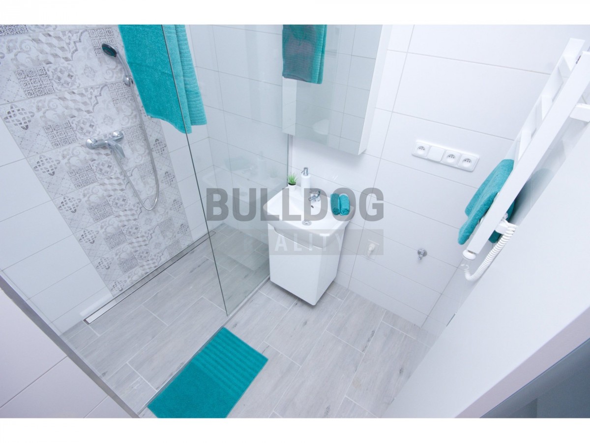 Dovolujeme se Vám nabídnout moderní novostavbu bytu s velkou terasou z roku 2019 v prvním patře cihlového domu. Byt je orientován do vnitrobloku, který se v současné době upravuje (srovnání terénu). Volné od 15. 5. 2022.... Byt je velice prakticky dispozičně řešen - nová kuchyňská linka včetně spotřebičů (kombinovaná lednice s mrazákem, sklokeramická varná deska, elektrická trouba, odsavač par) s jídelním koutem je propojená s obývacím pokojem. Z obývacího pokoje je vstup na terasu o velikosti 14 m2. Moderní světlá koupelna potěší nejen po náročném dni nadstandardně velký sprchovým koutem (š. 140 cm). Na podlahách je kvalitní světlá plovoucí podlaha. Nábytek viz foto je součástí vybavení (postel bez matrace). Nízké poplatky! Skvělá občanská vybavenost v pěší vzdálenosti - pošta, obchody, Kaufland, poliklinika, lékárna, divadlo, MŠ, ZŠ, restaurace, kavárny, park. Perfektní dopravní dostupnost - dům je přímo u metra Palmovka v pěší zóně, naproti domu jsou tramvajové zastávky linek č. 1, 2, 3, 5, 6, 8, 10, 14, 16, 17, 23, 24, 25.