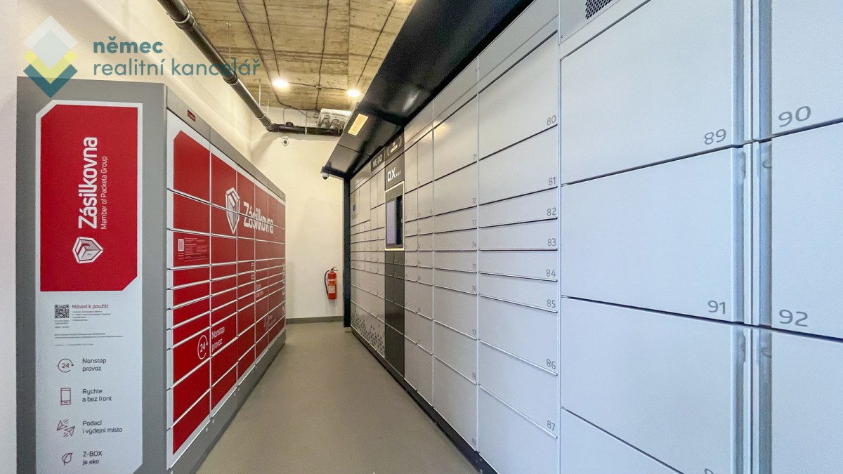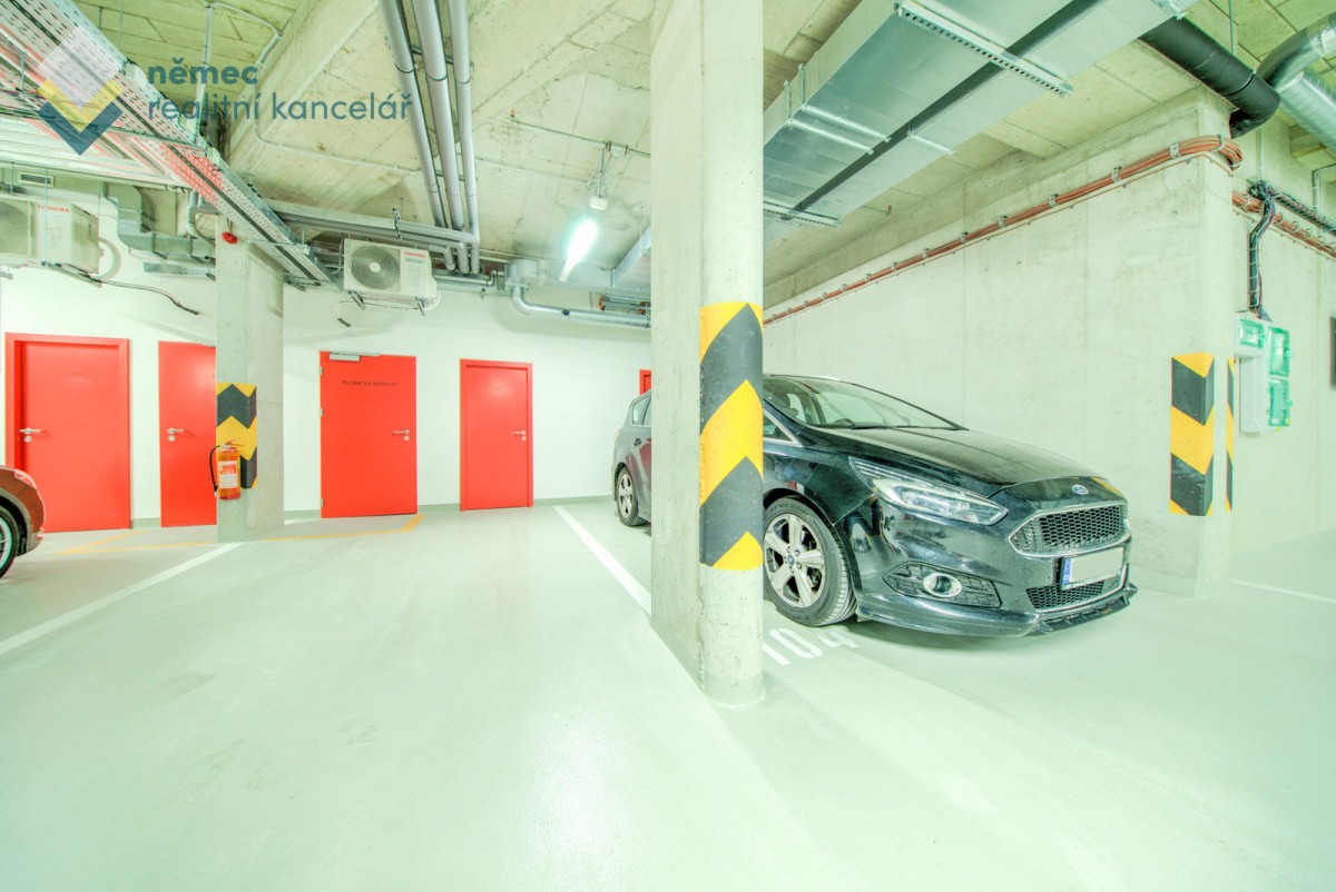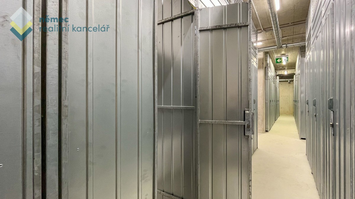 Možnost pronájmu krytého garážového stání v suterénu domu za částku 2990, - Kč / měsíc. K bytu dále náleží plechová a zděná sklepní kóje. Jedna kóje je v ceně pronájmu, druhá bude nabízena společně s parkovacím stáním.