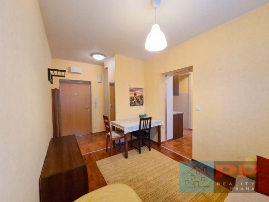 Byt je kompletně zařízený nábytkem včetně pračky a lednice. Dispozice se skládá z předsíně s obývacím prostorem, dále je uzavřený kuchyňský kout, koupelna s vanou a sociální zařízení WC a oddělená ložnice.