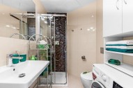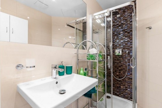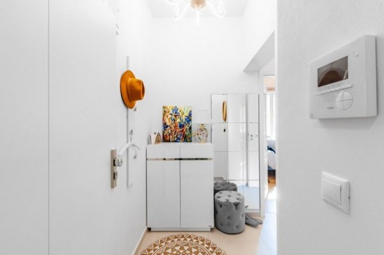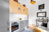 Byt je zařízen s vytříbeným vkusem, nadčasovou elegancí a promyšleně řešenými úložnými prostory. Dispozici tvoří vstupní chodba, plně vybavená kuchyňská linka s jídelním koutem se sofa, prostorná ložnice s arkýřem orientovaným na jihovýchod se stylovou odpočinkovou zónou, koupelna se sprchovým koutem, sanitou Villeroy and Boch, vyhřívanou dlažbou, pračkou se sušičkou.