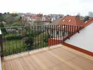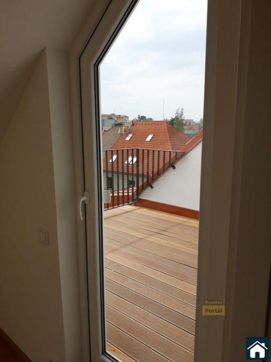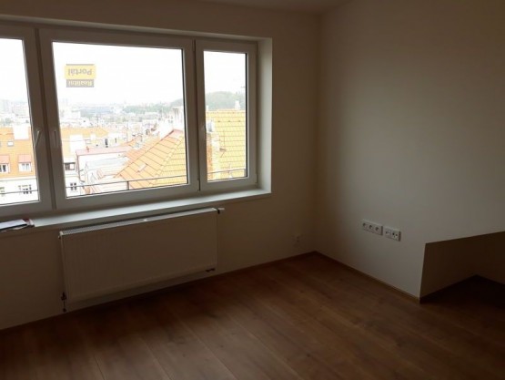 Nabízíme k pronájmu nový prostorný mansardní byt 2+kk 35 m2 s terasou 10m2 v moc hezké lokalitě Na Jeze...rce v 5. patře v nové nástavbě činžovního domu včetně výtahu. Byt má obývací pokoj s kuchyňským koutem, ložnici, koupelnu se sprchovým koutem, dále samostatnou toaletu a předsíň s vestavěnou skříní. Vytápění je řešeno ústředním topením s vlastním elektrokotlem. Ohřev vody zajištuje bojler. Možnost využití klimatizace. Podlahovou krytinou je plovoucí podlaha a dlažba. Dům je přímo u vstupu do parku, v blízkosti je veškerá občanská vybavenost. Doporučuji prohlídku bytu!