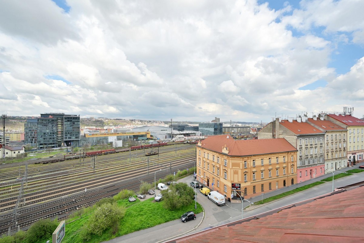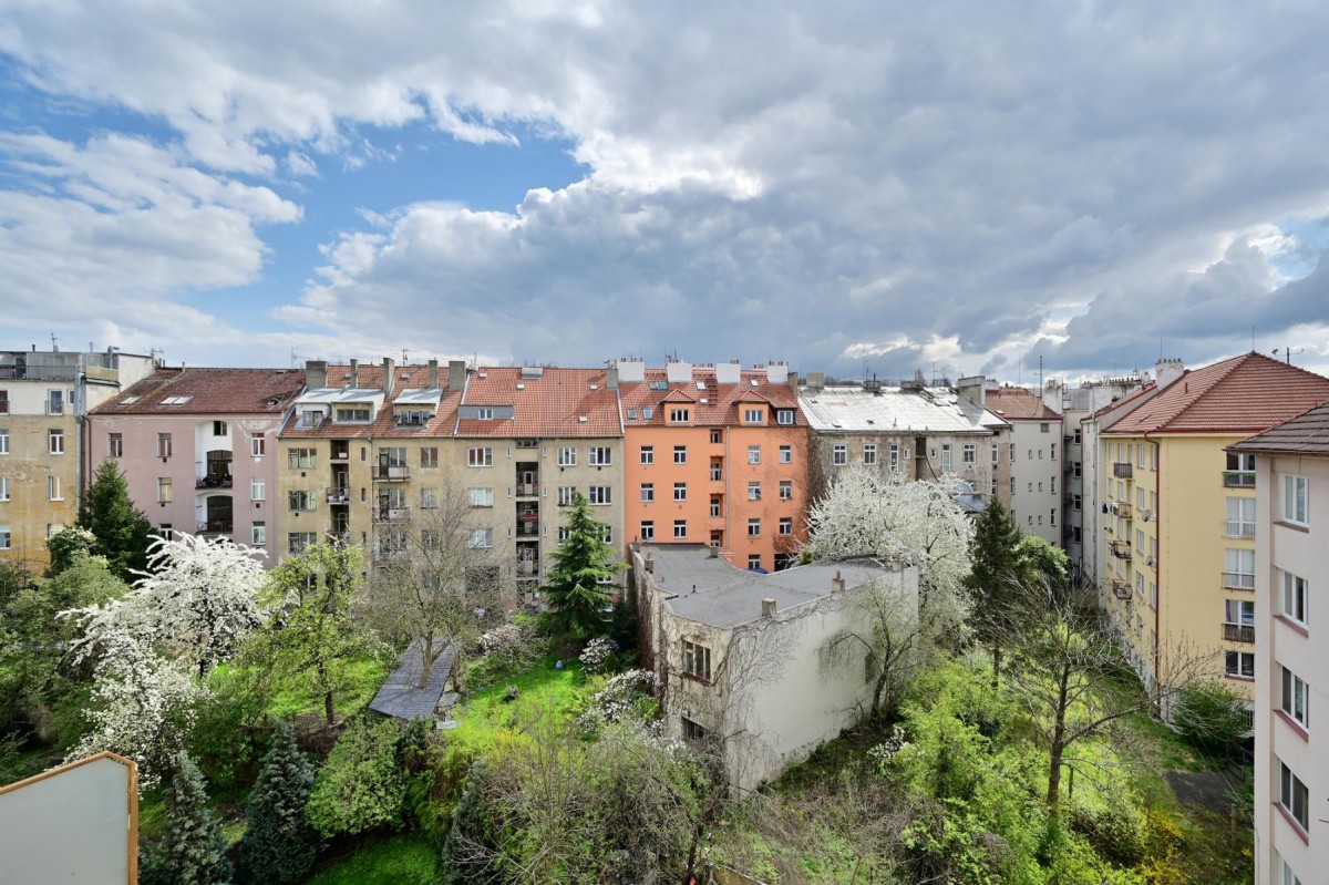 Pronájem 2+kk v posledním patře o velikosti 40 m2 a balkonem 4 m2 orientovaným na jih do vnitrobloku v domě včetně výtahu v Praze 9 Vysočanech.