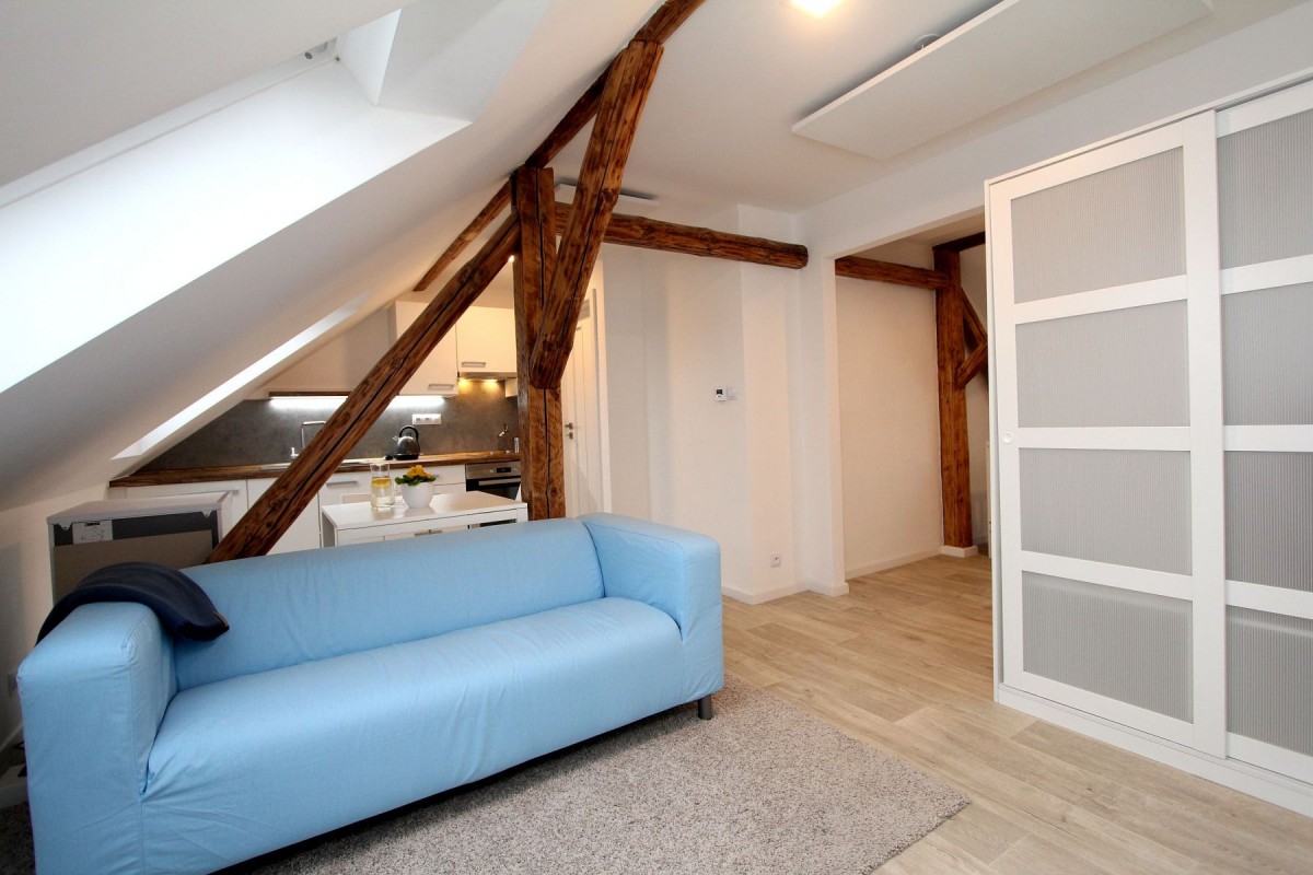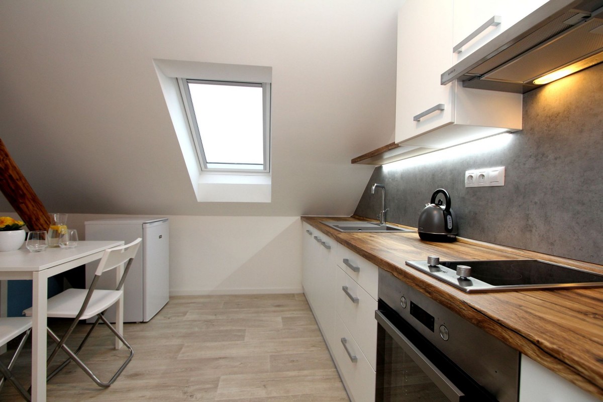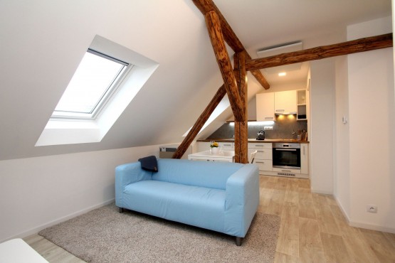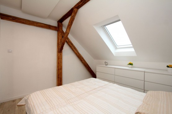 ...Naše nová nabídka právě splňuje výše uvedené. Dovolte mi, abych Vám ji více přiblížil. Náš dlouholetý klient dokončil výstavbu nového bytu o dispozici 2+kk v podkrovní části rodinného domu se samostatným vchodem. A to na velice dobře dostupné adrese v ulici Konečná v Pardubicích.