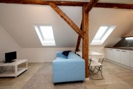 Byt se pronajímá jako kompletně zařízený (pračka, lednička, postel, šatní skříň, komody, sedačka, televize, základní nádobí apod. ) a tím je vhodný i ke krátkodobému pronájmu.