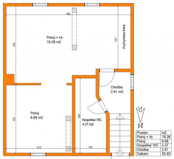 2+kk, 36 m2, cihlová, OV, 2. podlaží