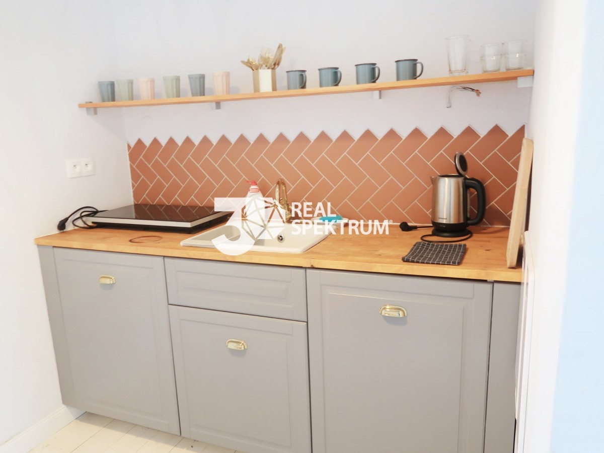 Nabízíme k pronájmu designový, útulný byt 2+kk o velikosti 38m2 v Brně - Zábrdovicích, na ul. Körnerova. Byt je po celkové rekonstrukci a je plně zařízen včetně ...manželské postele, rozkládacího gauče, stolku, 4 židlí, kuchyňské linky s lednicí, mikrovlnnou troubou, nádobím a pračkou. K bytu náleží také sklep na patře. V okolí bytu je veškerá občanská vybavenost a nachází se 10 min. chůze od centra města. MHD v docházkové vzdálenosti. Vhodné pro jednotlivce nebo pár bez zvířat. K nastěhování ihned. Cena nájemného je 13. 000, - Kč + 2500, - Kč zálohy na služby /teplo, voda, úklid domu, elektřina, internetové připojení/.