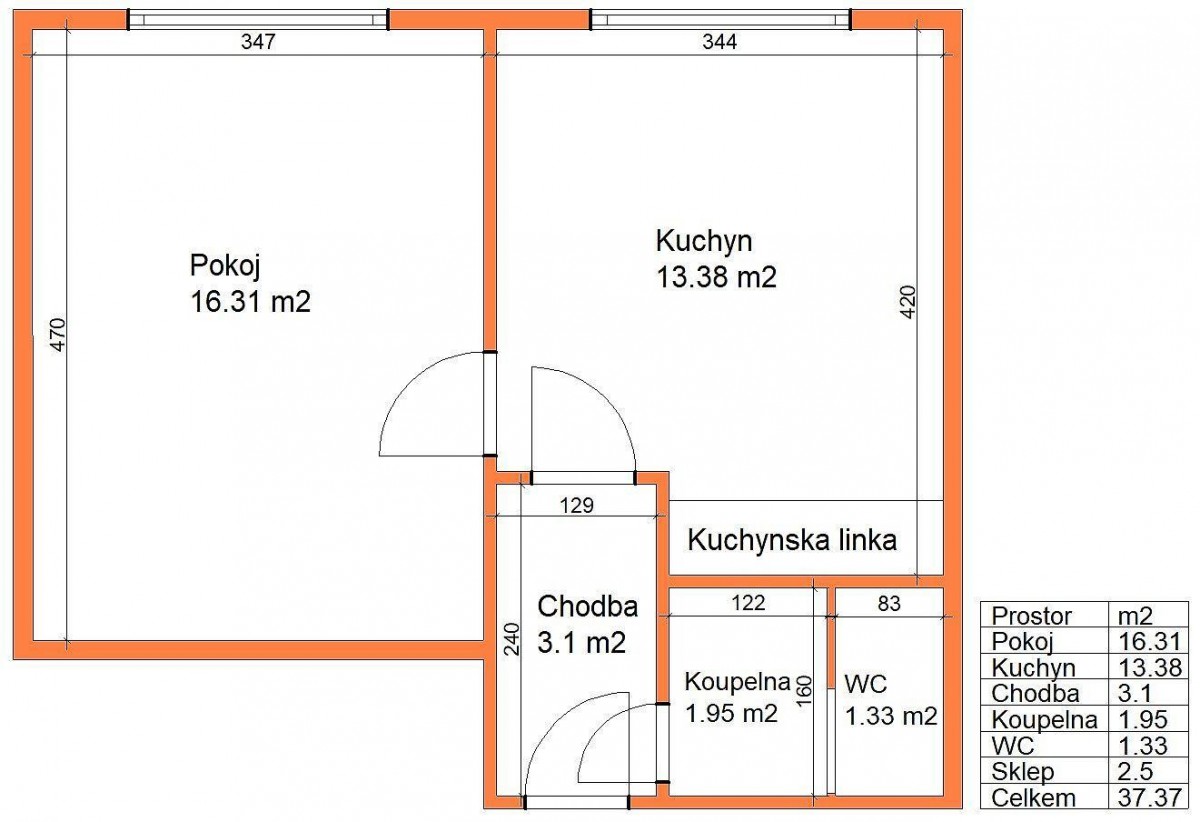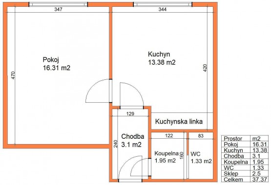 Jedná se o byt s původní dispozicí 1+1, 38 m2, užíván jako 2+kk. Byt v minulosti prošel částečnou rekonstrukcí (podlahy, částečně nová elektroinstalace, nový boiler, kuchyňská linka včetně spotřebičů, interiérové dveře, nátěr bytového jádra). Pronajímá se jako nezařízený, pouze se spotřebiči umístěnými v kuchyňské lince (pračka, pečící trouba, varná deska, odsavač par).