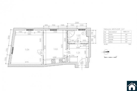 2+kk, 38 m2, cihlová, OV, 2. podlaží