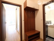 Byt tvoří hlavní obytná místnost 22 m2 s kuchyňskou linkou a vstupem na terasu 16 m2 s jihozápadní orientací, spací kout 8 m2 a koupelna se sprchovým koutem a toaletou 3, 5 m2, vše propojeno vstupní chodbou 5 m2 s šatními skříněmi. Součástí bytu je kompletně vybavená kuchyňská linka včetně spotřebičů, vestavné skříně a postel. K bytu náleží komora 1 m2. Volné dohodou.