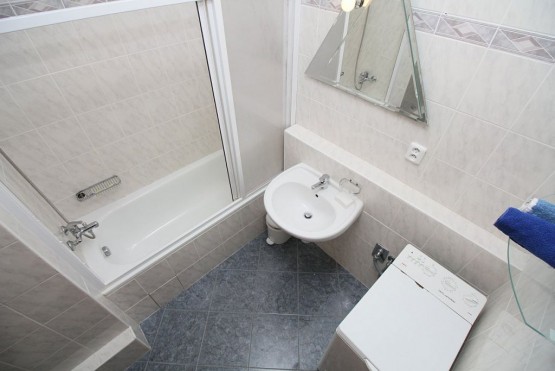 Koupelna s vanou, sociální zařízení WC. K dispozici je také pračka.